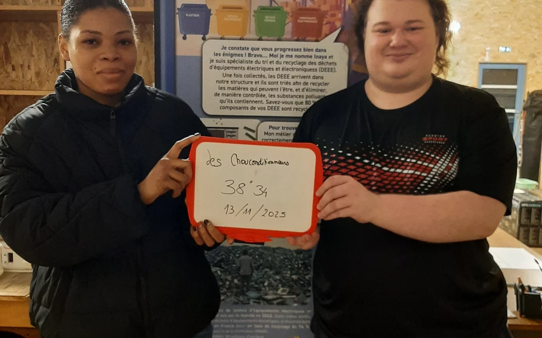 Ce jeudi 13 novembre, nos stagiaires Laurick et Christy (en photo), accompagnés de Valentin, ont testé pour Syntaxe Erreur 2.0 l’escape game « les reconditionneurs » en mode déambulation. « C’est bien pour le côté environnemental, ça nous apprend des choses » souligne Valentin. « J’ai aimé le fait que ça nous apprenne les enjeux sur le numérique » précise Christy. « J’aime les jeux à énigmes donc j’ai aimé et j’ai appris que la fabrication d’objets numériques se faisait dans des conditions sans respect des normes environnementales ou encore en exploitant des populations » retient Laurick.