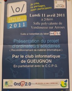 En effet le 11 avril 2011, le club informatique de Gueugnon (à l’origine de Syntaxe Erreur 2.0) présentait sur le territoire du label national ORDI2.0 (projet d’ordinateurs solidaires (reconditionnement de matériel informatique).